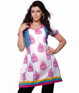 Fabdeal Casual Wear White & Pink Colored Cotton Kurti